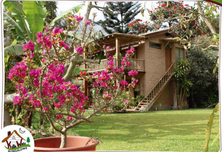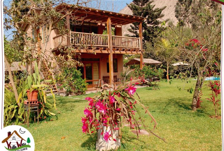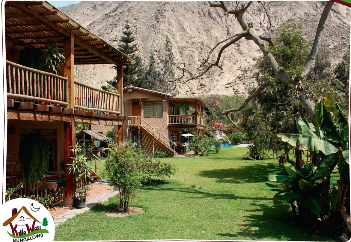 Esta propiedad comprende de: Cabañas estilo rústico andino conformadas por 4 bungalows matrimoniales de 45 m2 c/u y 2 bungalows familiares de 75 m2 c/u Zona de vivienda con amplios espacios adecuados para cafetería, restaurante,spa y otros. 3 amplias habitaciones con baños privados cocina y sala Aproximadamente 2,000 m2 de áreas verdes Zona de parrilla techada y con mesón Piscina con cascada Zona de bar Reservorio de agua 20 m3 Una oficina NOTA : Área adicional de casi 1,000 m2 con instalaciones para cultivos hidropónicos y/o para